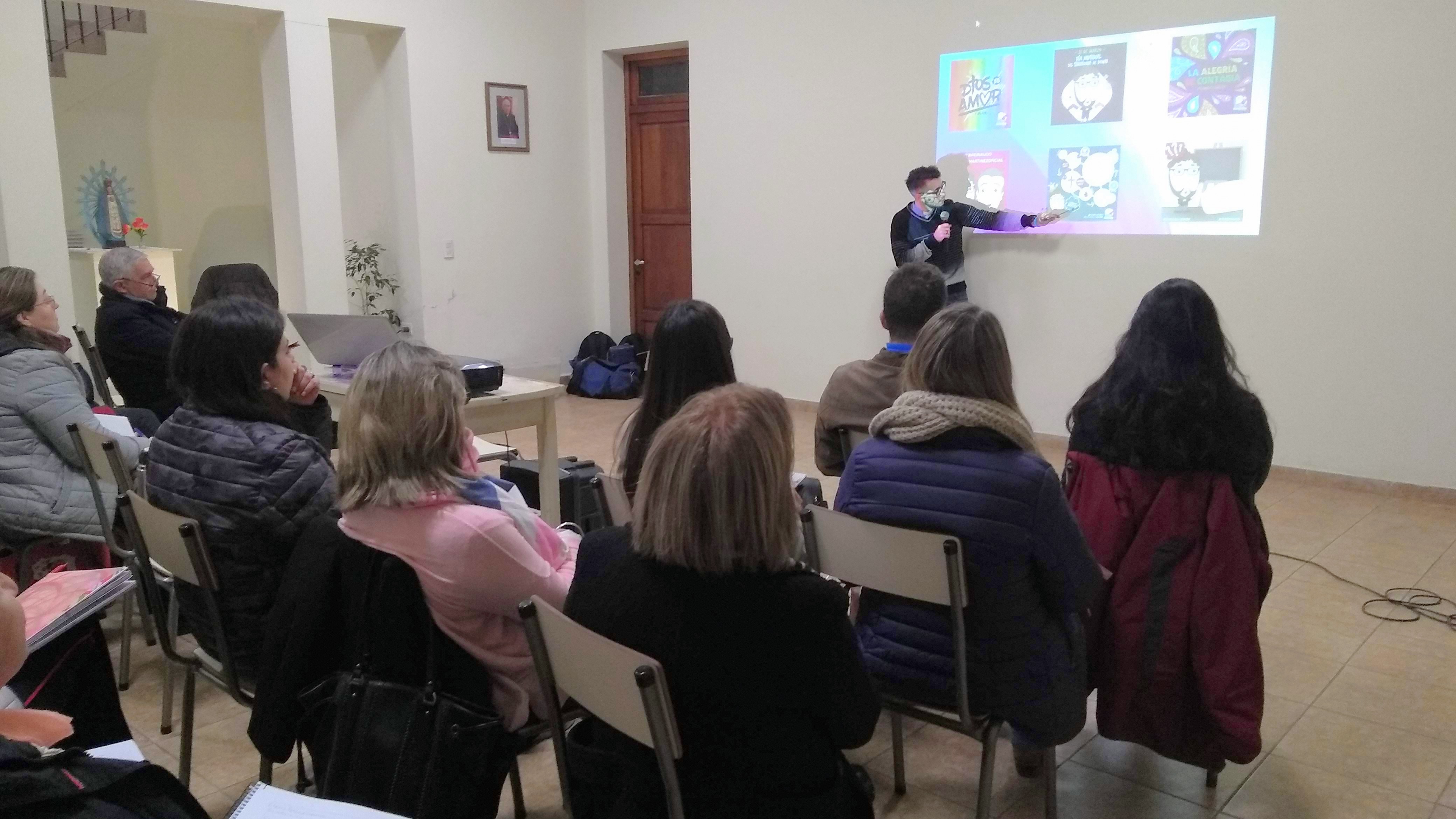 El taller se desarrolló en dos partes: en una primera el padre Reinaudo hizo referencia a cómo trabajan las redes sociales y en una segunda parte brindó detalles de cómo utilizar las herramientas que tienen las diferentes aplicaciones y que permiten crear contenidos significativos.